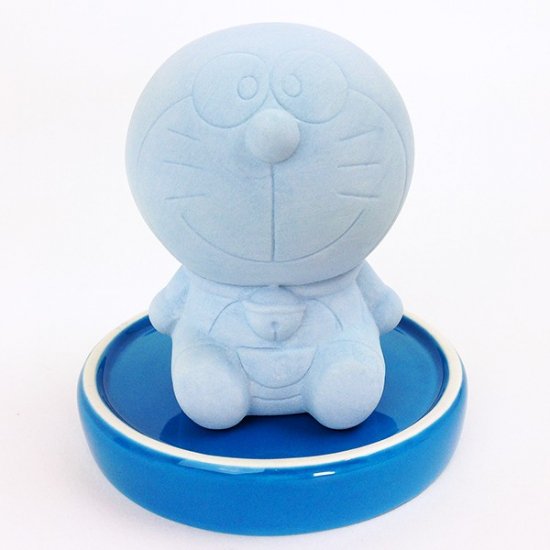 パステルブルーのカラーがキュートな、ドラえもんの素焼き加湿器です。