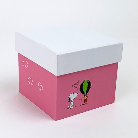 スヌーピーからいわゆるギフト向きの商品をご紹介します。スヌーピーのフラワージュエリーBOXはフタを開けるまでは、ワクワクが詰まってそうな四角い箱です。箱の周りにはカラフルな気球に乗ったウッドストックがデザインされています。パッと目を引く明るいカラーリングが特徴のボックス♪