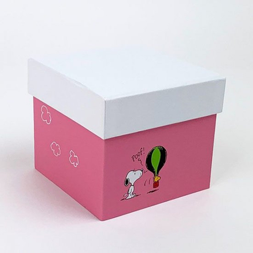 ボックスを開くと内側にもスヌーピーがデザインされており、クルクルと飛んでいるスヌーピーがまるでお花畑の周りを楽しんでいるようです。
