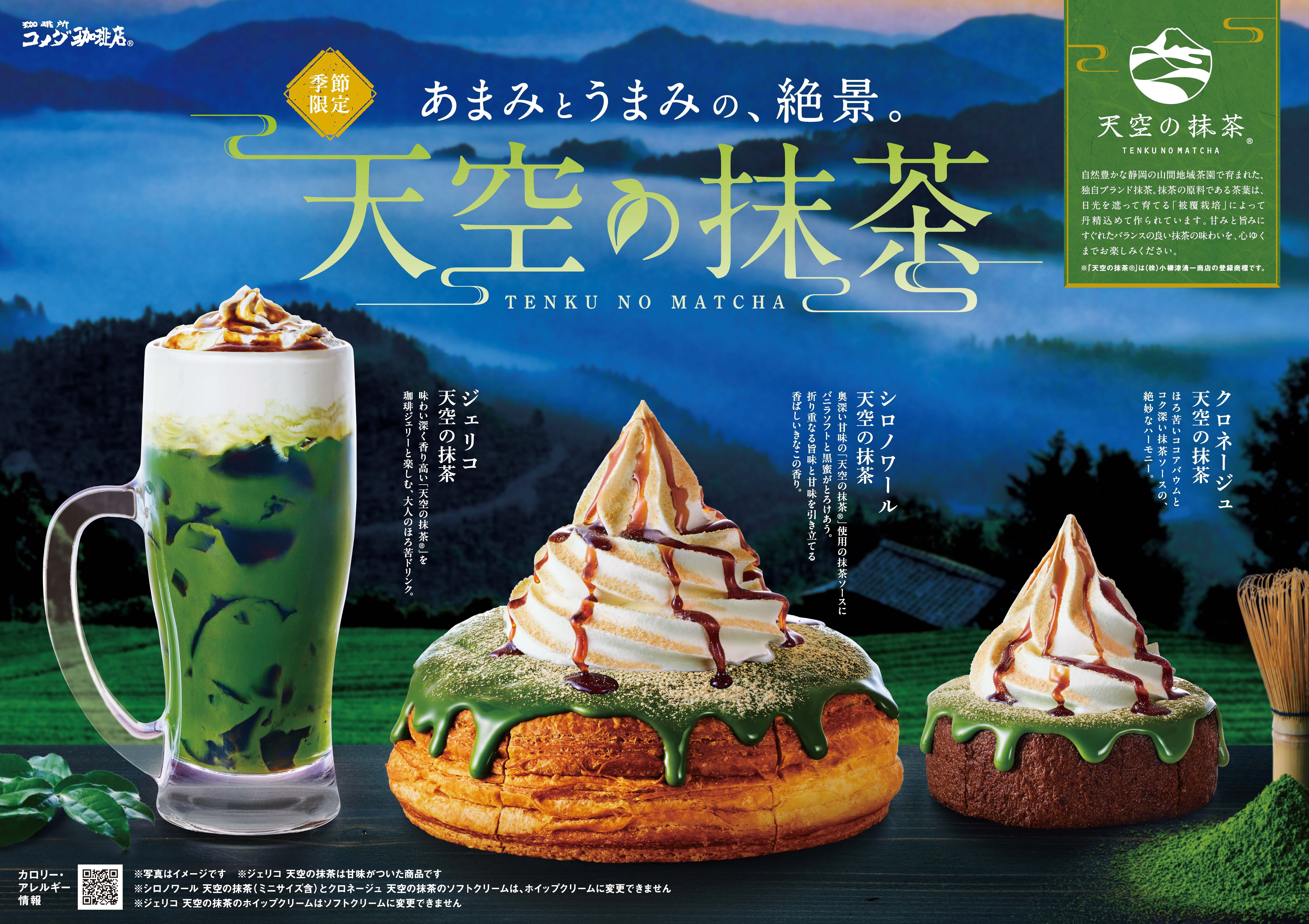 全国にフルサービス型の喫茶店を展開する株式会社コメダ [本社:愛知県 代表取締役社長:甘利祐一 グループ店舗数:1029店舗(2024年4月末時点)]は、静岡県の山間地域で栽培される「天空の抹茶(R)」を使用した3種の商品を、2024年6月5日(水)より、全国のコメダ珈琲店にて季節限定で販売いたします。