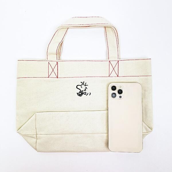 続いてご紹介するスヌーピーの75thアイテムはトートバッグと同じデザインの、サイドボタンミニトートバッグです。