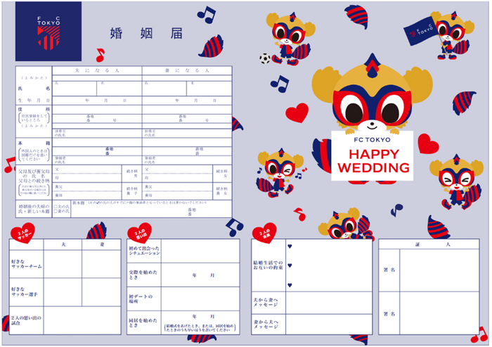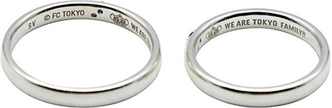 このほどのコラボリング(指輪)は、4素材展開のファッションリングと、シルバー製ペアリングです。シンプルで着けやすいデザインながら、FC東京を象徴する青と赤のカラーを、サファイアとルビーの宝石で表現。青には「誠実」、赤には「情熱」という意味がこめられています。リング内側には、チームマスコット「東京ドロンパ」のマークと、「WE ARE TOKYO FAMILY!!」というファン・サポーターへの特別なメッセージを刻印。チームと共に歩む証として、ファッションリングはじめ、結婚指輪やペアリングとしても着用いただける特別なジュエリーです。また、ペアでご購入いただいた方には、オリジナルデザインの保管用婚姻届けをプレゼント。証人欄にはお好きなFC東京選手のサインを入れてお届けします。