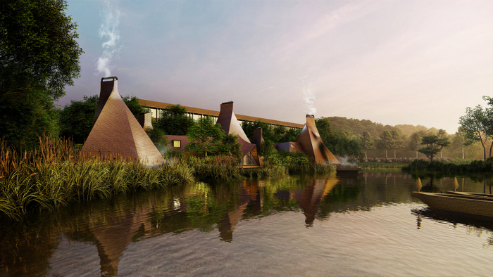 界 ポロトは、界ブランドにおける北海道初進出の施設です。コンセプトは「ポロト湖の懐にひたる、とんがり湯小屋の宿」。ポロト湖を敷地内に大胆に引き込んだつくりが特徴的で、全ての客室がポロト湖に面しているため、眼前には湖の広がりを感じることができます。コンセプトでは、ポロト湖との一体感を感じる様子を「懐にひたる」と表現しました。ポロト湖の懐にひたるような一体感を感じながら湯浴みがたのしめる宿です。