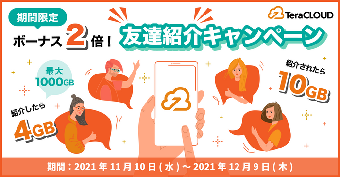 クラウドストレージ「TeraCLOUD」を紹介したら【+4GB】紹介されたら【+10GB】もらえる、友達紹介ボーナス倍増キャンペーンは12月9日まで👀