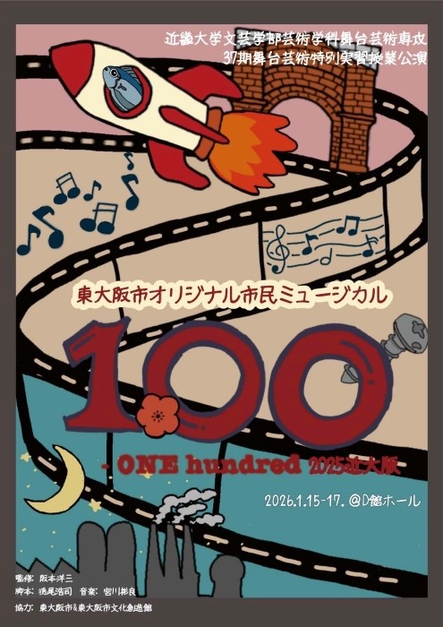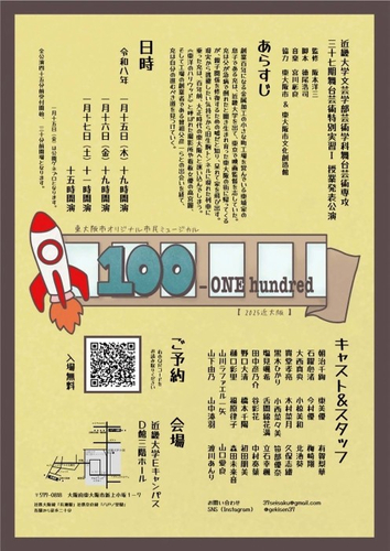 近畿大学文芸学部(大阪府東大阪市)芸術学科舞台芸術専攻は、令和8年(2026年)1月15日(木)から17日(土)までの3日間、近畿大学東大阪キャンパスにて、ミュージカル『100 -ONE hundred(ワン ハンドレッド)』を上演します。