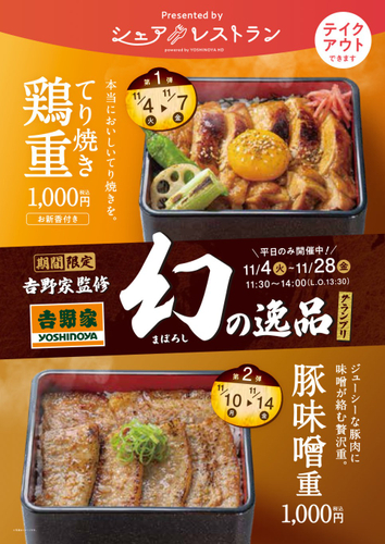 飲食店開業支援プラットフォーム「シェアレストラン」を運営する株式会社シェアレストラン(代表取締役:武重準、本社:東京都中央区)は、「シェアレストラン」を利用した吉野家監修イベント「幻の逸品グランプリ」が2025年11月4日に開幕した事を報告します。
