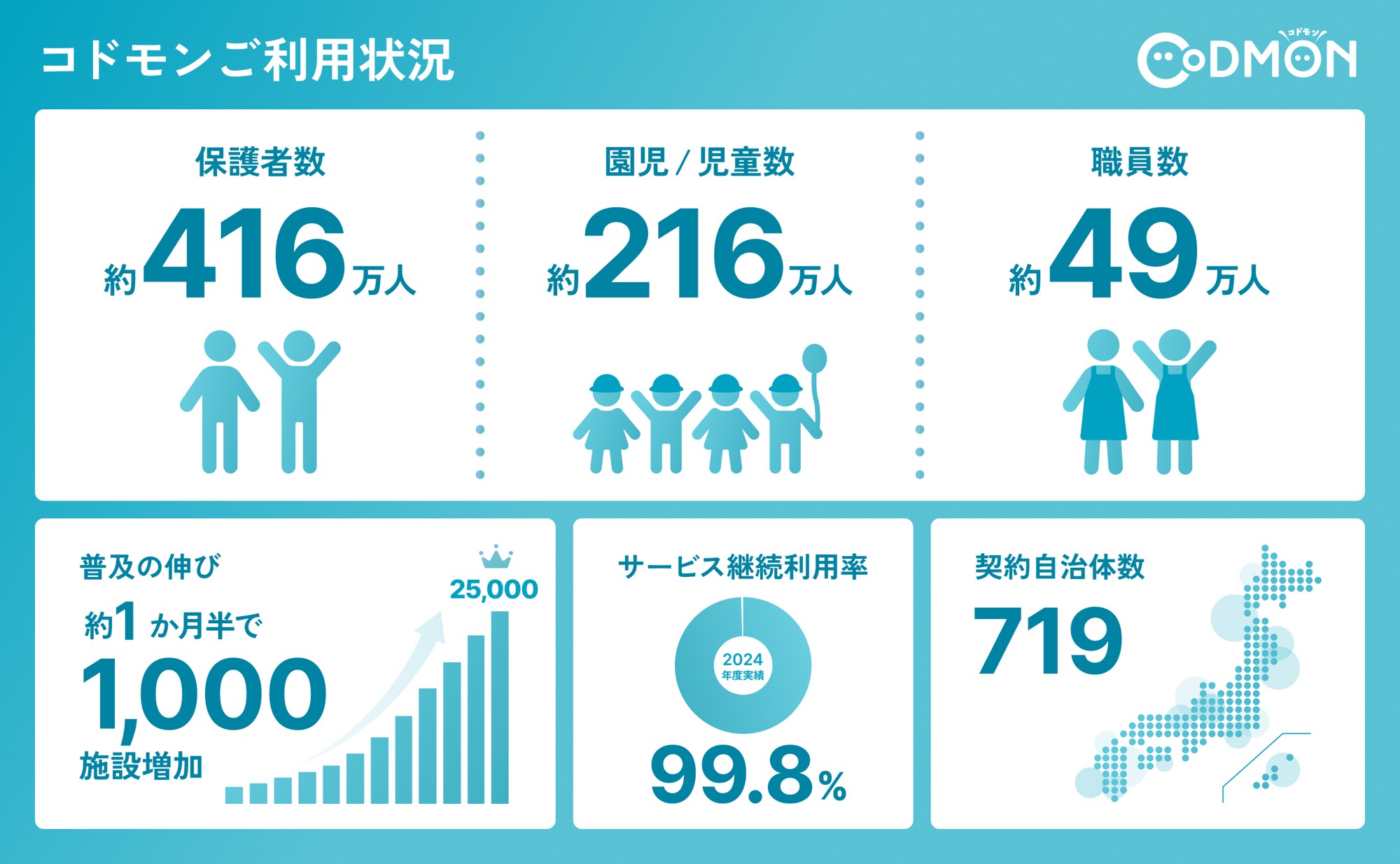 保育・教育・療育施設向けICTサービス「CoDMON(コドモン)」過去最速の普及ペースで、全国25,000施設に導入 ~日本の保護者の約30%が利用する子育ての社会基盤へ~