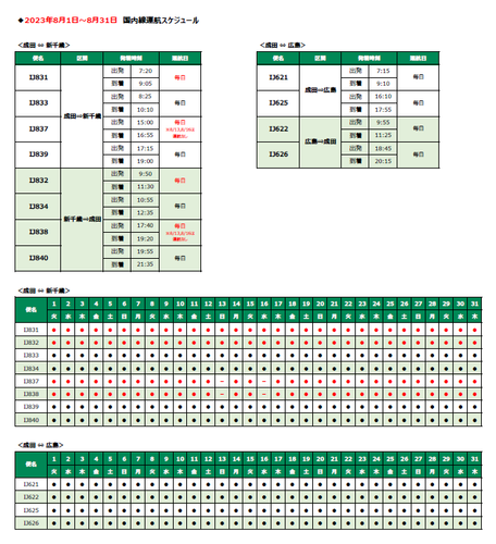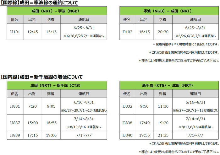 スプリング・ジャパン 2023年6月~8月 国際線および国内線の増便について スプリング・ジャパン株式会社 2023-05-26 13:00 スプリング・ジャパン株式会社(本社:千葉県成田市、代表取締役社長:米澤 章、以下:スプリング・ジャパン)は、2023年6月~8月の成田=寧波線の運航および成田=新千歳線の増便を以下のとおり決定し、本日5月26日(金)15時より、販売を開始いたします。 運賃およびダイヤの詳細につきましては、スプリング・ジャパン公式サイトをご覧ください。 SPRING JAPAN公式サイト - 格安航空券の予約検索 SPRING JAPAN公式サイトでは毎日リーズナブルな価格の航空券を予約できるほか、割引セール情報も常時ご提供しています。さっそく特典チケットをチェックしましょう。格安チケットの購入はウェブサイトだけではなく、スマホサイト、コールセンターも気軽にご利用ください。 https://jp.ch.com/ ジャンル: 旅行・お出かけ 画像一覧 一括ダウンロード
