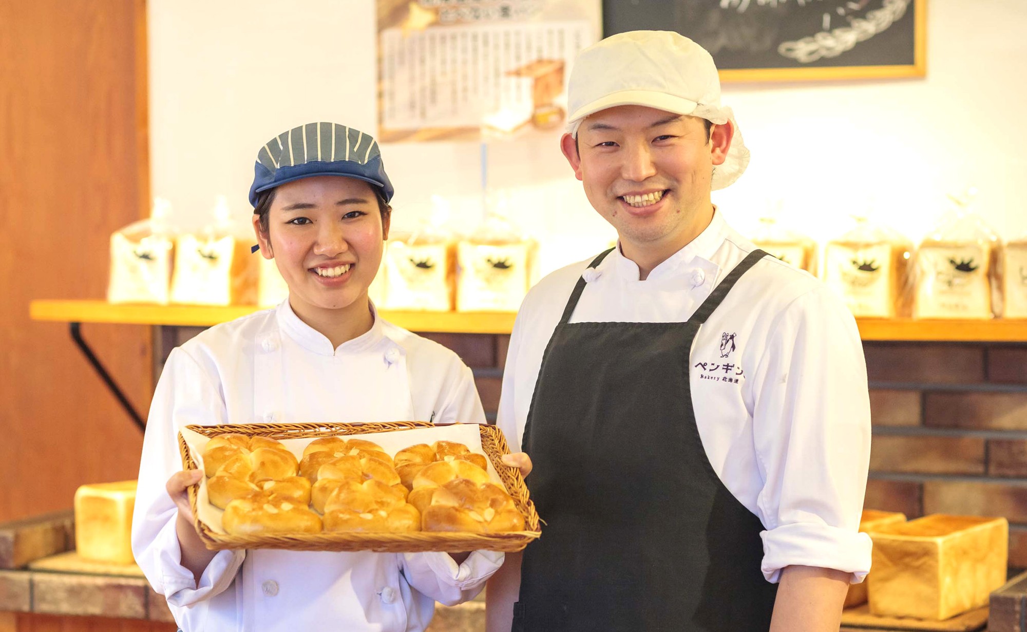 ペンギンベーカリーは、「北海道の大地で育った小麦をつかい、子どもからお年寄りまで毎日食べていただけるパン」をコンセプトに全国展開する北海道のパン屋さん。北海道産の小麦をつかった焼きたてパンを求めて、多くのお客様がご来店されます。