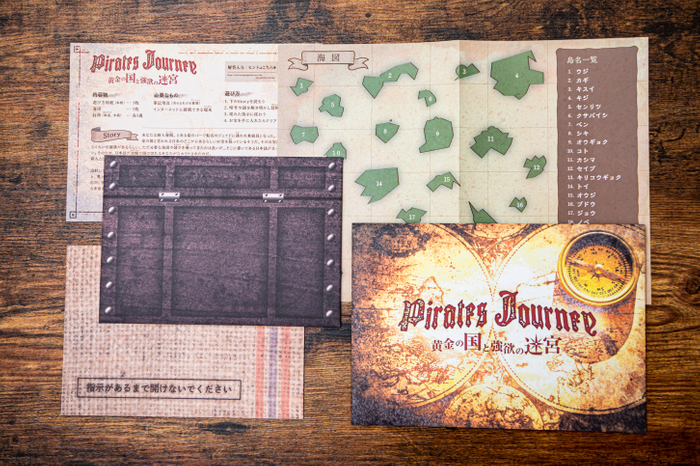あなたは、とある島のバーで船長のジェイドに誘われ新人海賊になりました。どうやら“黄金の国"日本のどこかに命と同じくらいの価値があるお宝があり、船長たちはそれを狙っているようです。しかしそのお宝を見つけるための海図は日本語で書かれていて、船長たちには読めません。そこで日本語が流暢で頭の切れるあなたがスカウトされたのです。早速、あなたは船長たちと共に長い旅路へと出航しました。解く喜びと見つける喜びの両方を味わえる、まるで宝探しをしているかのような謎解きをお楽しみください。