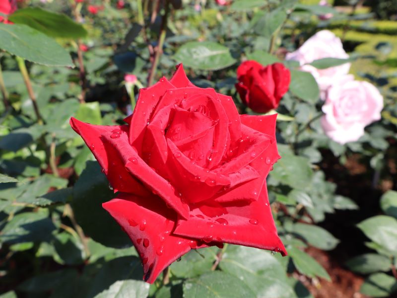 バラの香りを楽しみたいなら、香りの成分が揮発される朝のご来園がおすすめです。香り立つバラ園をお楽しみください。