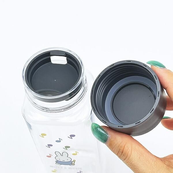 中身がわかるクリアボディの水筒です。ミッフィーがリコーダーをもって音楽を楽しむ姿にキュン。口が広く氷の楽々入るのもうれしいポイントです。サイズ:18.9cm×5.5cm×5.5cm 素材:飽和ポリエステル樹脂、PP、シリコーンゴム