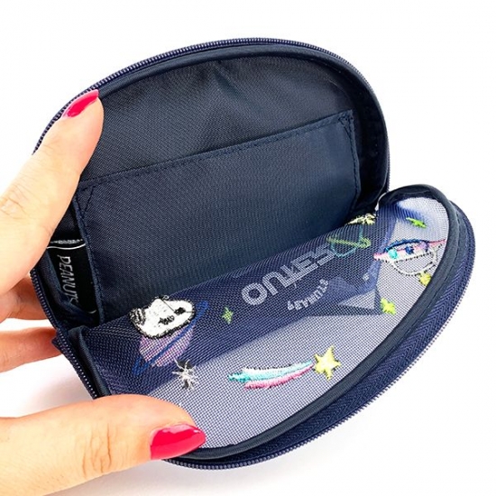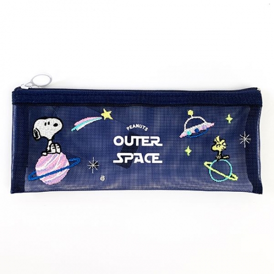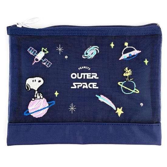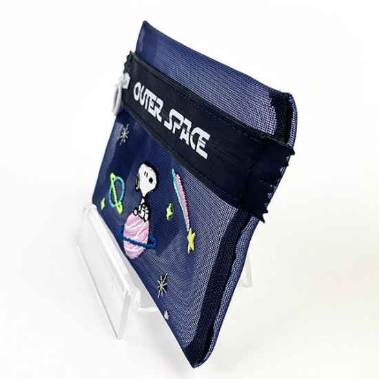 メッシュ素材がこれからの時期にもピッタリなポーチは、用途もいろいろ♪宇宙をモチーフとしていて、淡いカラーの刺繍がとってもかわいいんです。