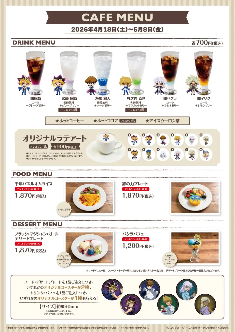 ※期間でメニュー、コースターデザインを変更予定です。