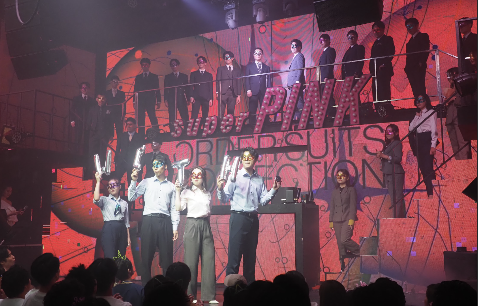 さらに、ショー全体にはドラマ的な演出も加えています。ビジネスバッグやノートパソコン、コーヒーなど、リアルなビジネスシーンを想像させる小物を随所に取り入れ、一つひとつの登場に“背景のある物語”を添えています。ただの衣装展示ではなく、「このスーツを着たその先のストーリー」を観客が感じ取れるような時間を目指しました。