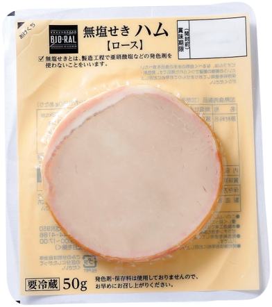 発色剤・着色料・保存料を一切使用しない“無塩せき製法”を採用。さまざまな料理に使用しやすいスライスタイプ。