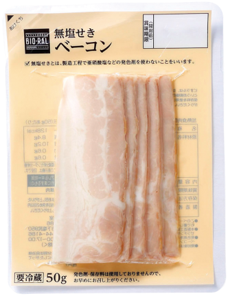 発色剤(亜硝酸ナトリウムなど)を使わずに、味付け・塩漬けした製造方法。