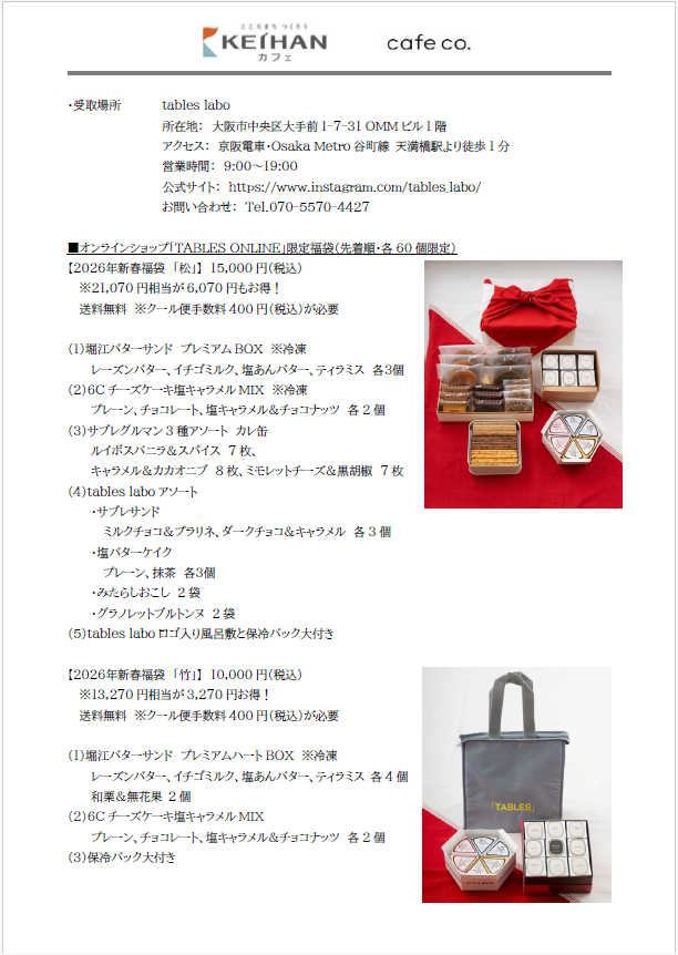 オンラインショップ「TABLES ONLINE」限定福袋(先着順・各60個限定)
