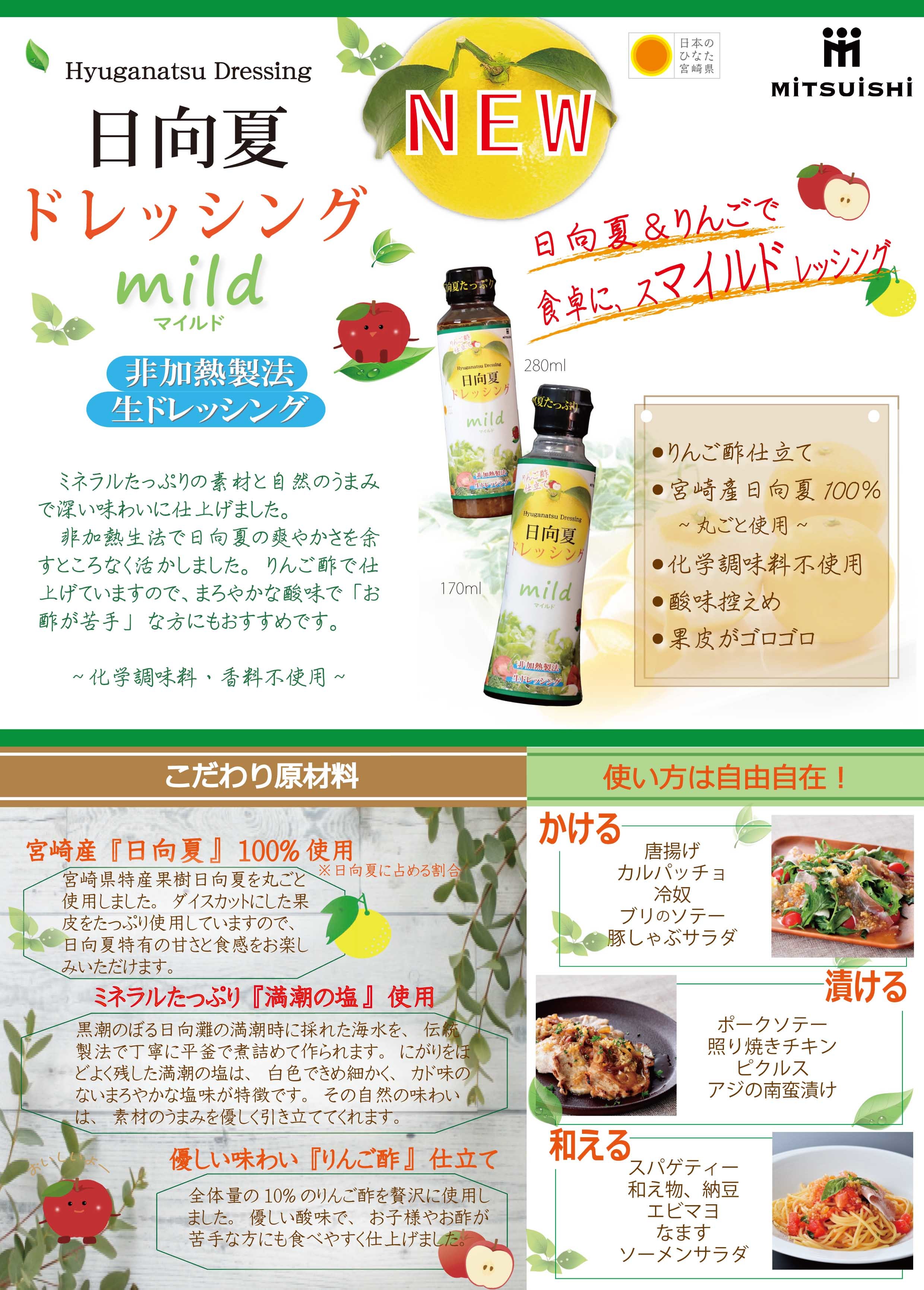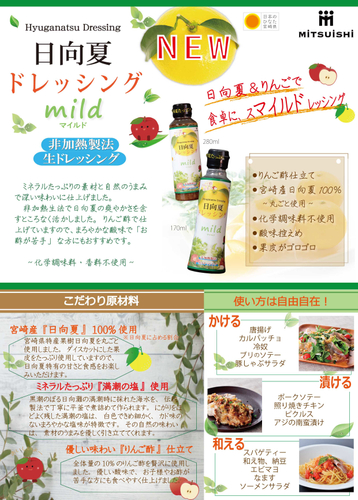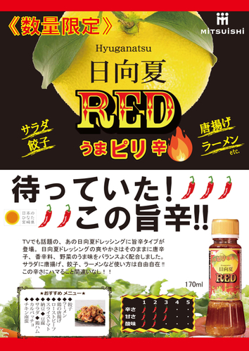 ミツイシ株式会社(所在地:宮崎県日向市、代表取締役:黒木 宏二)は、2023年2月1日に、日向夏ドレッシングの別バージョン商品として、「日向夏ドレッシングmild(マイルド)」、「日向夏RED(レッド)」を2商品を同時発売します。