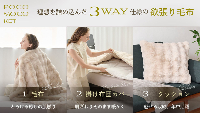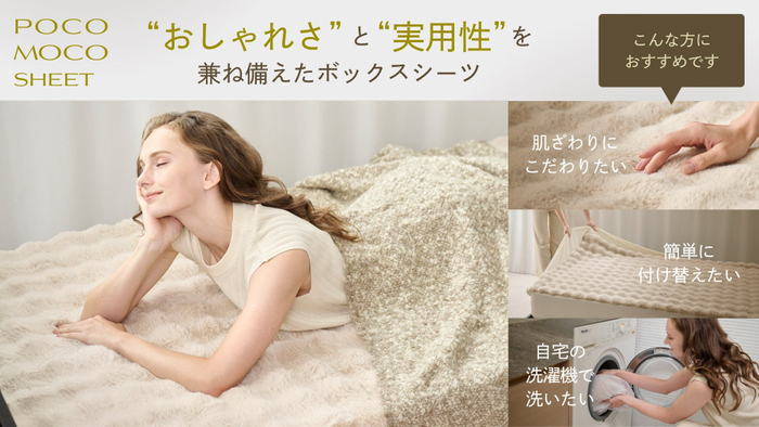 【GOKUMIN】POCOMOCOシリーズ誕生。とろける肌ざわりと極上のぬくもり。暮らしを美しく彩る「3WAYケット」&「ボックスシーツ」が新登場。