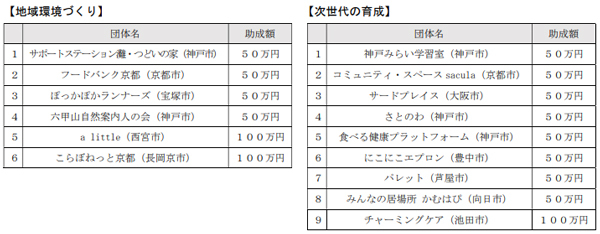 「地域環境づくり」と「次世代の育成」 に取り組む合計15団体に総額900万円を助成