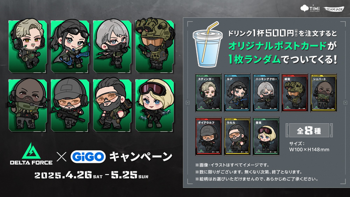 株式会社GENDA GiGO Entertainment(本社:東京都港区 代表取締役社長:二宮 一浩 以下「当社」)は2025年4月26日(土)より、GiGOグループのお店におきまして、チーム戦術に特化した無料タクティカルシューター『Delta Force』(デルタフォース)とのコラボキャンペーンを開催いたします。