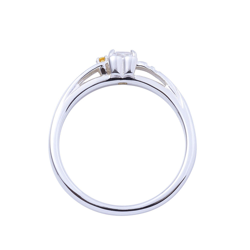 甲丸フォルムのリングにコスチュームの固定ベルトのラインを取り込み、煌びやかなスクエアカットのストーンとシトリンをセット。
