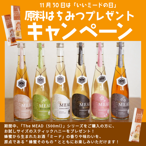 京都の蜂蜜専門店ミールミィ(株式会社金市商店/京都市中京区)は、11月30日の「いいミードの日」にあわせて、蜂蜜で造ったお酒“ミード”の魅力を広めるキャンペーンを2025年11月14日(金)~2025年11月30日(日)の期間、ミールミィ各店で実施します。