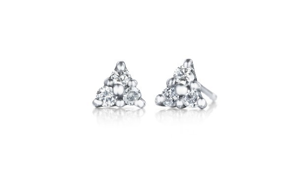 エンゲージリングとお揃いデザインの、愛らしいピアス。ピアスは石座に丸みをもたせ、かわいらしく。ぎっしり詰まった6粒のダイヤモンドで華やかに。