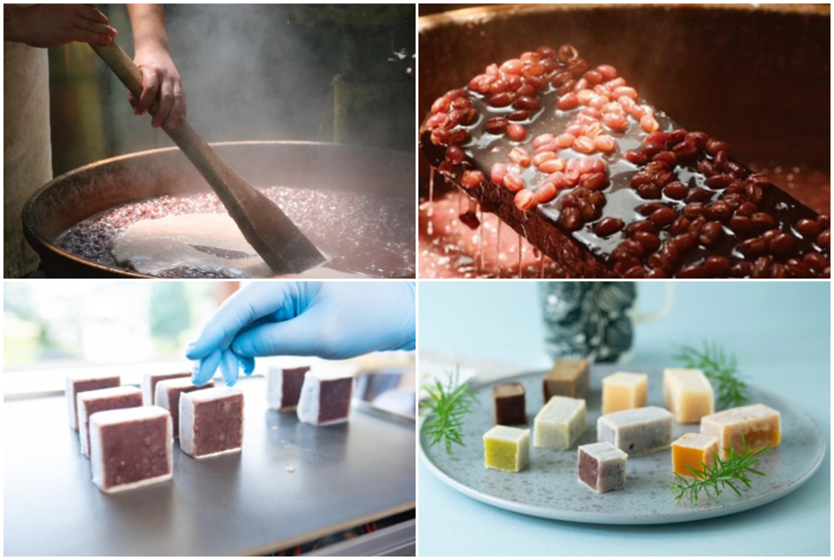 小豆はきんつば作りのために選んだ大粒を、北海道十勝の契約農家さんから仕入れた、香り高さが特徴の品種「襟裳小豆(えりもしょうず)」のみを使用しています。皮が潰れずにパンパンに膨れるところまで丁寧に炊き上げます。小豆の粒はつやつやと輝き、小豆本来の上品な味わいに仕上がります。