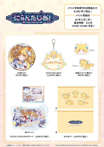 **2025年9月2日18:00〜2025年10月5日15:00までの先行受注期間中に通販サイト「サンリオアニメストアONLINE」でイベント参加券付き全商品セットをご購入いただいた方には、2025年10月5日(日)14:00〜15:00に「サンリオアニメストア 池袋P'PARCO店」で開催予定の特別イベントへご参加いただけます。**
