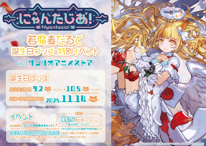 **株式会社ClaN Entertainment(本社:東京都港区 代表取締役社⻑:⼤井 基⾏、以下ClaN)は、株式会社サンリオ(本社:東京都品川区)と共同で行うVTuberプロジェクト「にゃんたじあ!」に所属する「若魔麦たると」が9月2日に誕生日を迎えたことを記念し、誕生日グッズの販売を行います。**