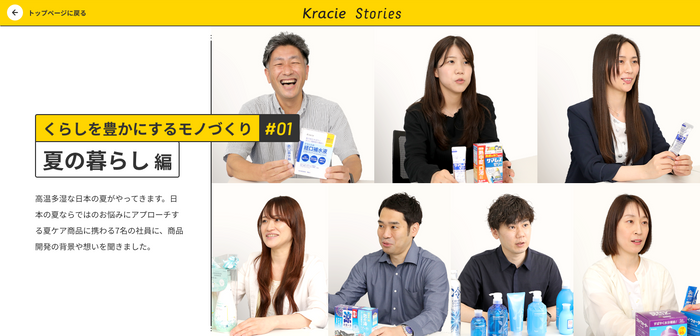 くらしを豊かにするモノづくり #01 夏の暮らし 編 公開中! クラシエホールディングス株式会社 2022-08-23 15:30 クラシエは、日本の高温多湿の夏ならではのお悩みにアプローチすつクラシエの夏ケア商品の開発に携わる7名の社員に商品開発の背景や想いを語る「くらしを豊かにするモノづくり#01 夏の暮らし編」を人はくらしでできているWEBページに公開しました。 まだまだ厳しい残暑が続きますが、くらしを快適に健康に過ごすためのヒントが満載です。ぜひご覧ください。 くらしを豊かにするモノづくり#01 〜夏の暮らし編〜 | 人はくらしでできている - Kracie Stories | クラシエ 日本の夏ならではのお悩みにアプローチする夏ケア商品に携わる7名の社員に、商品開発の背景や想いを聞きました。 https://www.kracie.co.jp/kurashi/story/001/page1/ ジャンル: 旅行・お出かけ ライフスタイル 画像一覧 一括ダウンロード