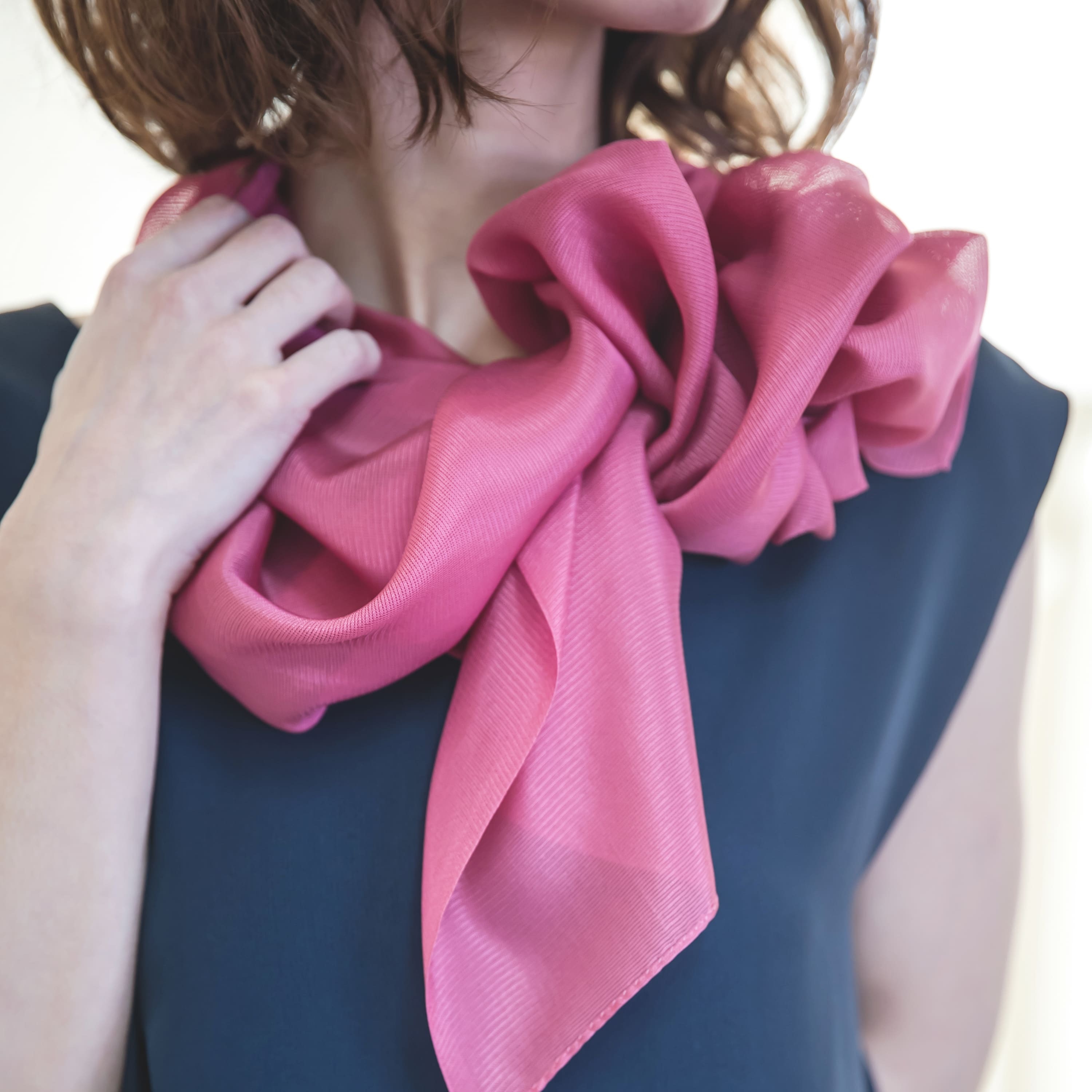 生地も染めも着物に由来する、シルク100%でできたストール・スカーフからブランドは始まりました。