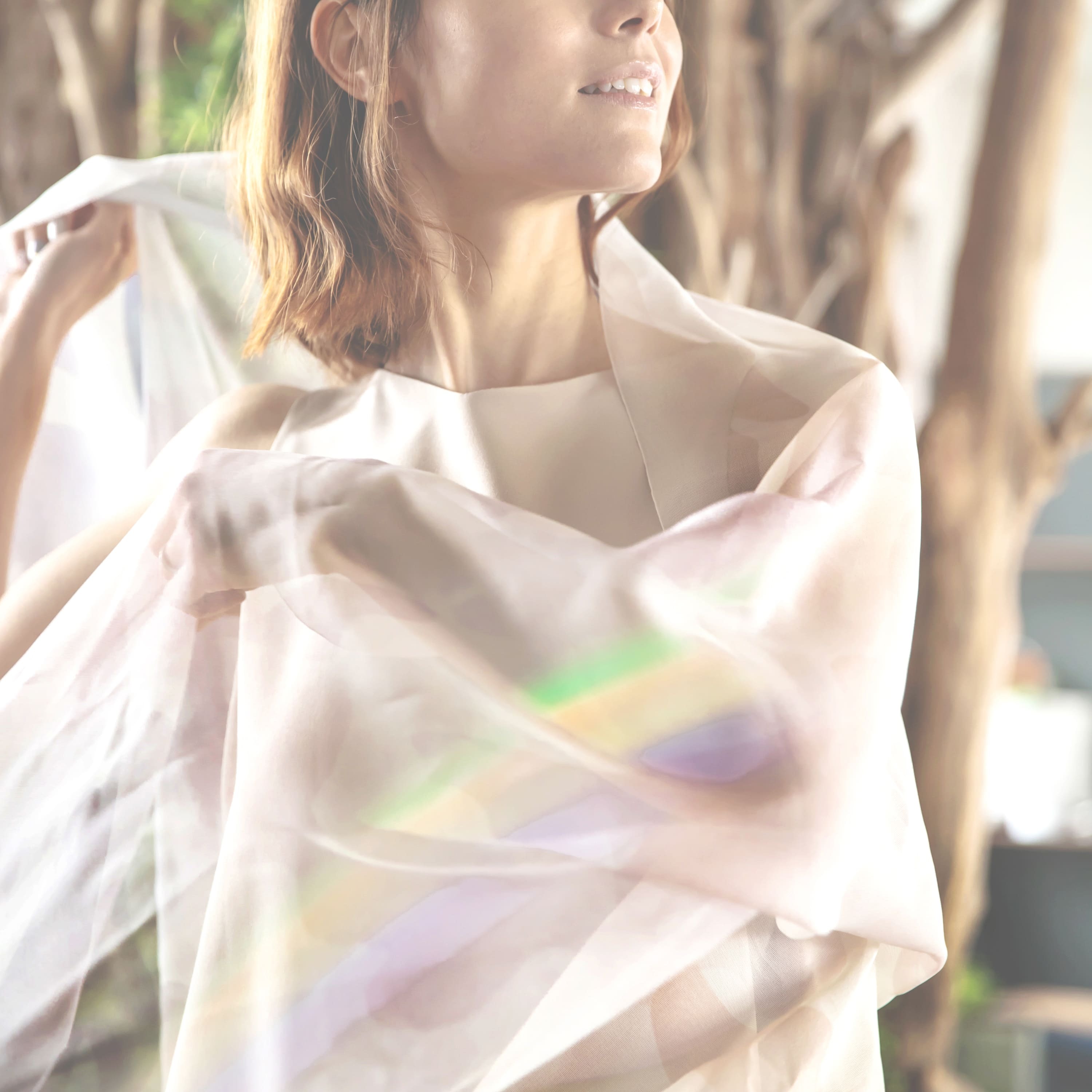 紫外線遮へい率の高いシルクの機能性をいかしオシャレしながら肌や髪を守ります。