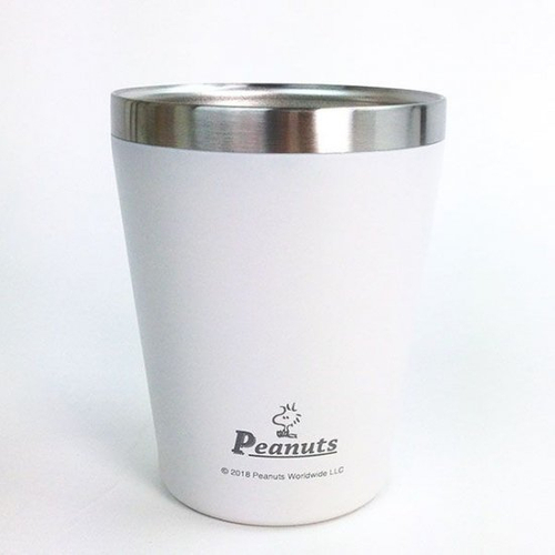 2つ目に紹介するステンレスタンブラーは、こちらです。白を基調としたデザインが美しいですよね。スヌーピーのおかげで、シンプルながら飽きの来ないデザインとなっています。サイズは、11×8.5cmです。