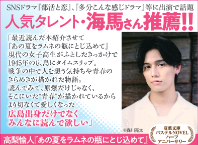 1945年、戦時下の広島を舞台にした青春ファンタジー小説、高梨愉人『あの夏をラムネの瓶にとじ込めて』が2025年7月9日に発売されました。