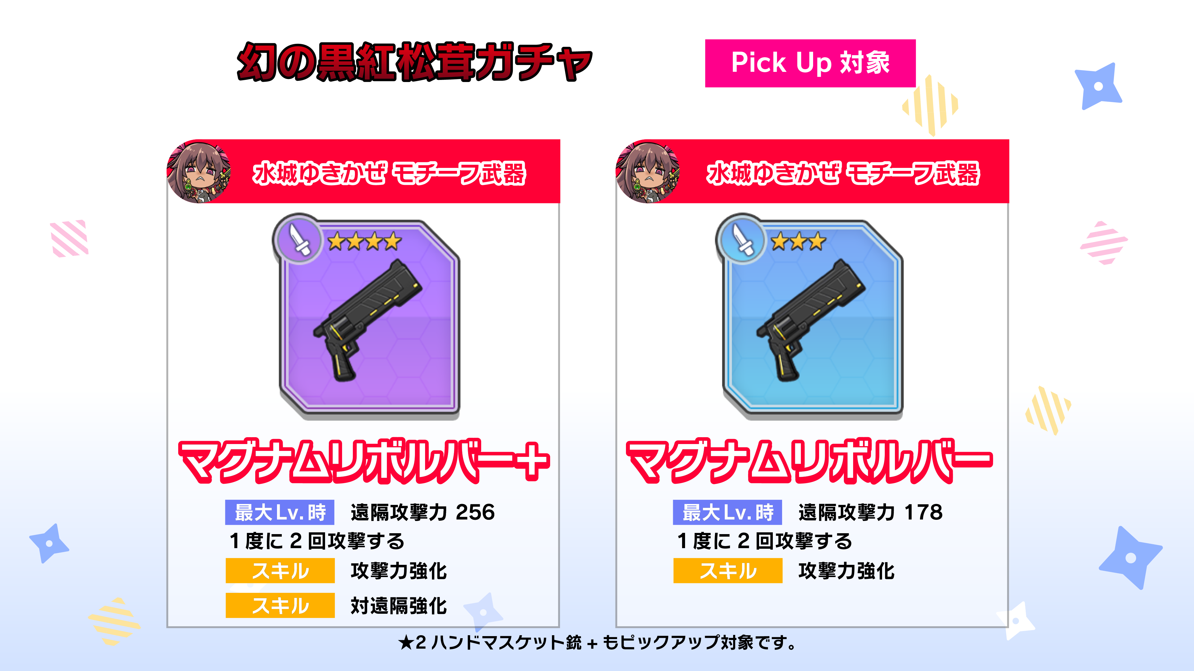 対魔忍「水城ゆきかぜ」のモチーフ武器をピックアップしたガチャが登場します。