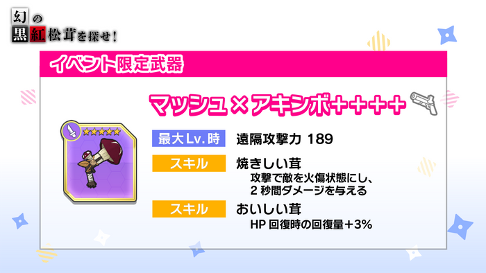 ■幻の黒紅松茸を探せ!開催記念ガチャ&ショップ登場!