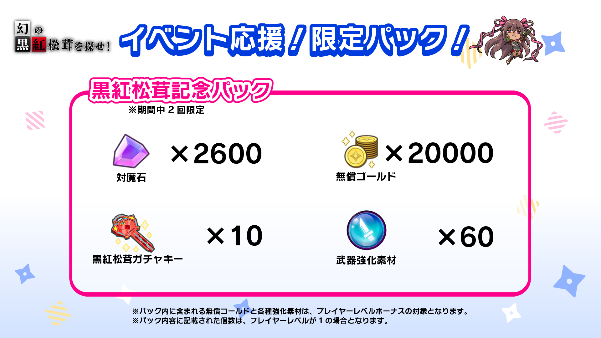 イベント開催中はショップにてお得な期間限定アイテムパックを販売します。
