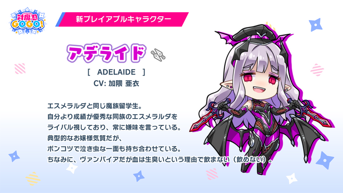 株式会社Gremory(本社:大阪市中央区、取締役社長:武山英治)より、『対魔忍GOGO!』において、新対魔忍「アデライド」の登場と新イベント「幻の黒紅松茸を探せ!」開催とをお知らせいたします。