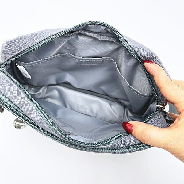 こちらも収納面よさげです。バッグ前面には2つのファスナーポケットが付き、内装にもポケットがついているので荷物を仕分けて収納することができる便利なバッグです小物収納に便利です。