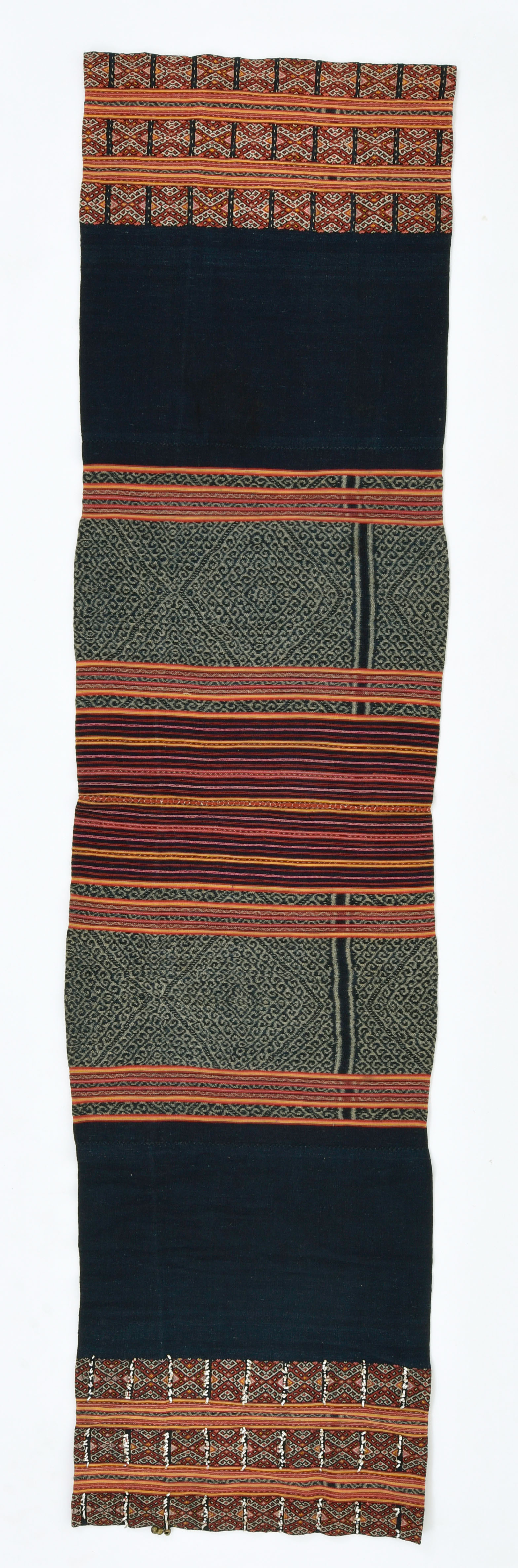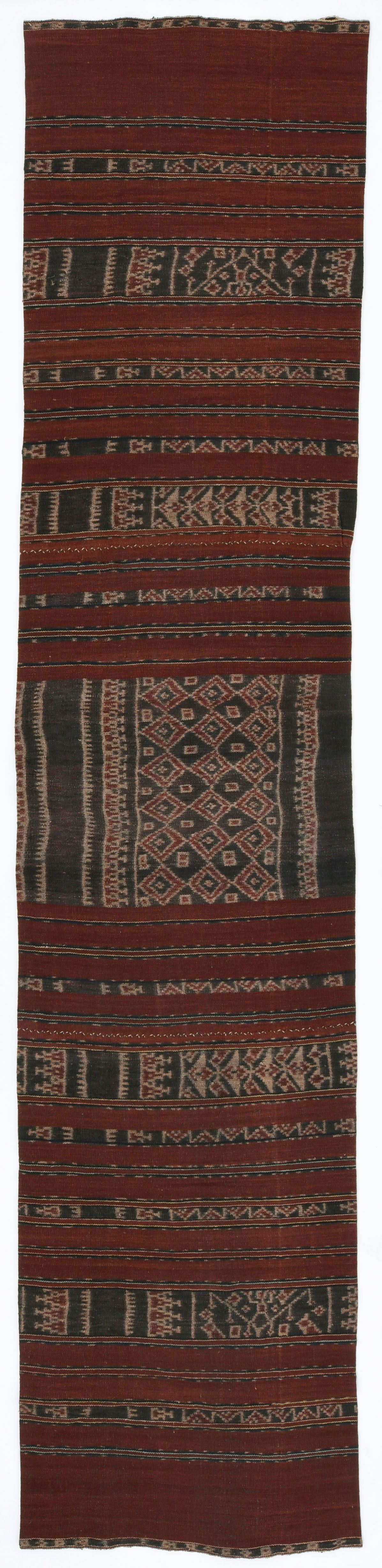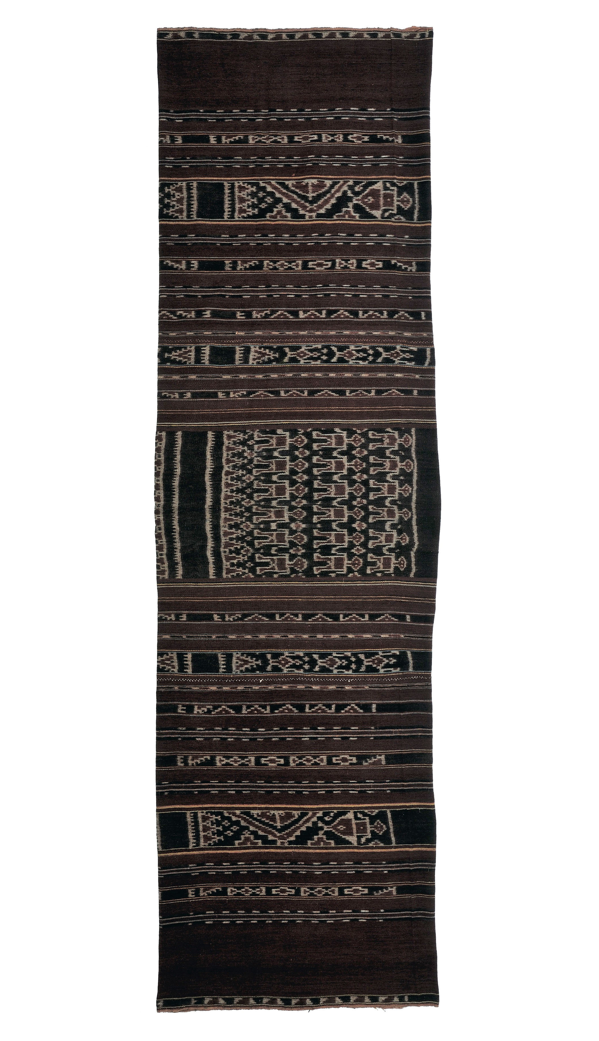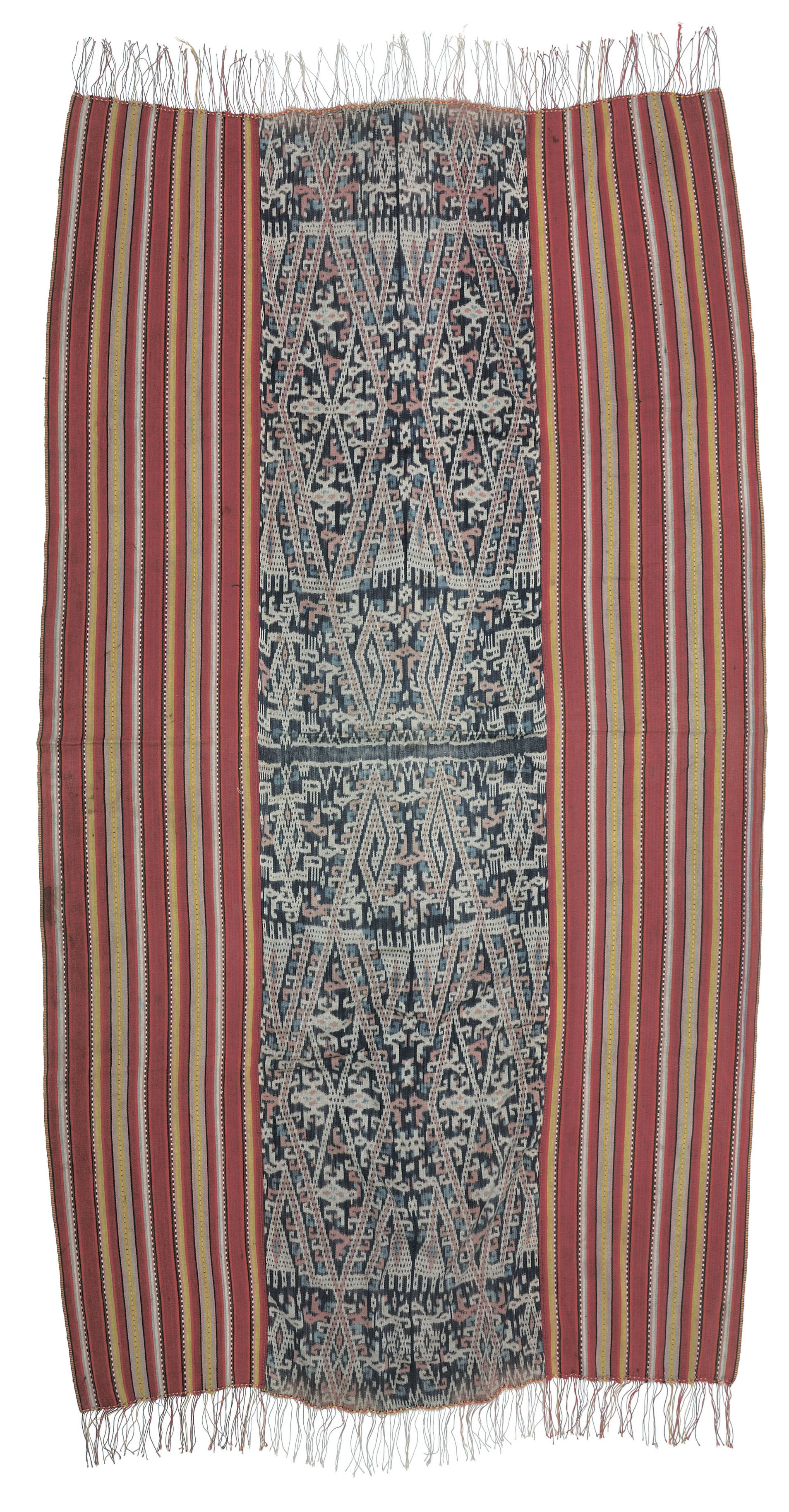 江上氏は、研究テーマのひとつである「巨石記念物」調査の一環として、1980年代後半から30年以上歩き続けたインドネシア東部の村々で、少しずつイカットを蒐集してきました。「巨石記念物」を残す調査地には、必ず島ごと、地域ごとに異なる染織物の文化がありました。ここでは江上氏が民族考古学調査を通じて、レンバタ島以外で出会い、蒐集してきた魅力的なイカットの中から一部をご紹介します。