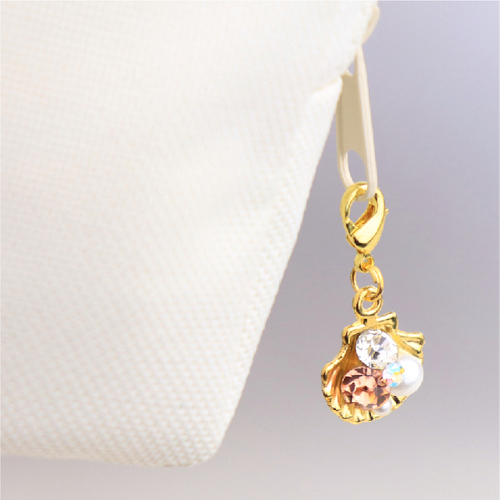 コロンとしたプチトップの貝殻にパールやストーンがギュギュッとのっています。