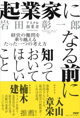 株式会社PHP研究所(京都市南区・代表取締役社長 瀬津要)は、2026年3月6日に『起業家になる前に知っておいてほしいこと――経営の難問を乗り越えるたった一つの考え方』(岩田彰一郎著/税込2,310円)を発売します。著者の岩田彰一郎氏は、文具メーカーの社内ベンチャーから巨大企業「アスクル」を創り上げた経営者です。2019年に退任し、現在はベンチャー企業の支援や大企業のイノベーションの推進を行っています。本書は岩田氏が、自身の経営哲学を惜しみなく語った初の著書。アスクル株式会社を創業した経緯や経営の中で直面した課題、理想と現実との間で葛藤したことなど、多くのベンチャー経営者やビジネスリーダーが直面する難問に自らの体験談を交えて語った貴重な一冊です。