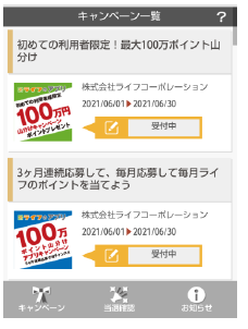 手間のかかるはがきの記入やレシートの読み取りが不要。アプリ上でキャンペーンにエントリーし、お買い物の際にレジでポイントカードを提示するだけで、簡単にキャンペーンに応募することができます。当落もアプリ内で確認できます。