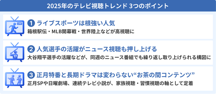 今回の集計結果から、2025年のテレビ視聴トレンドとして、次の3点が見えてきました。