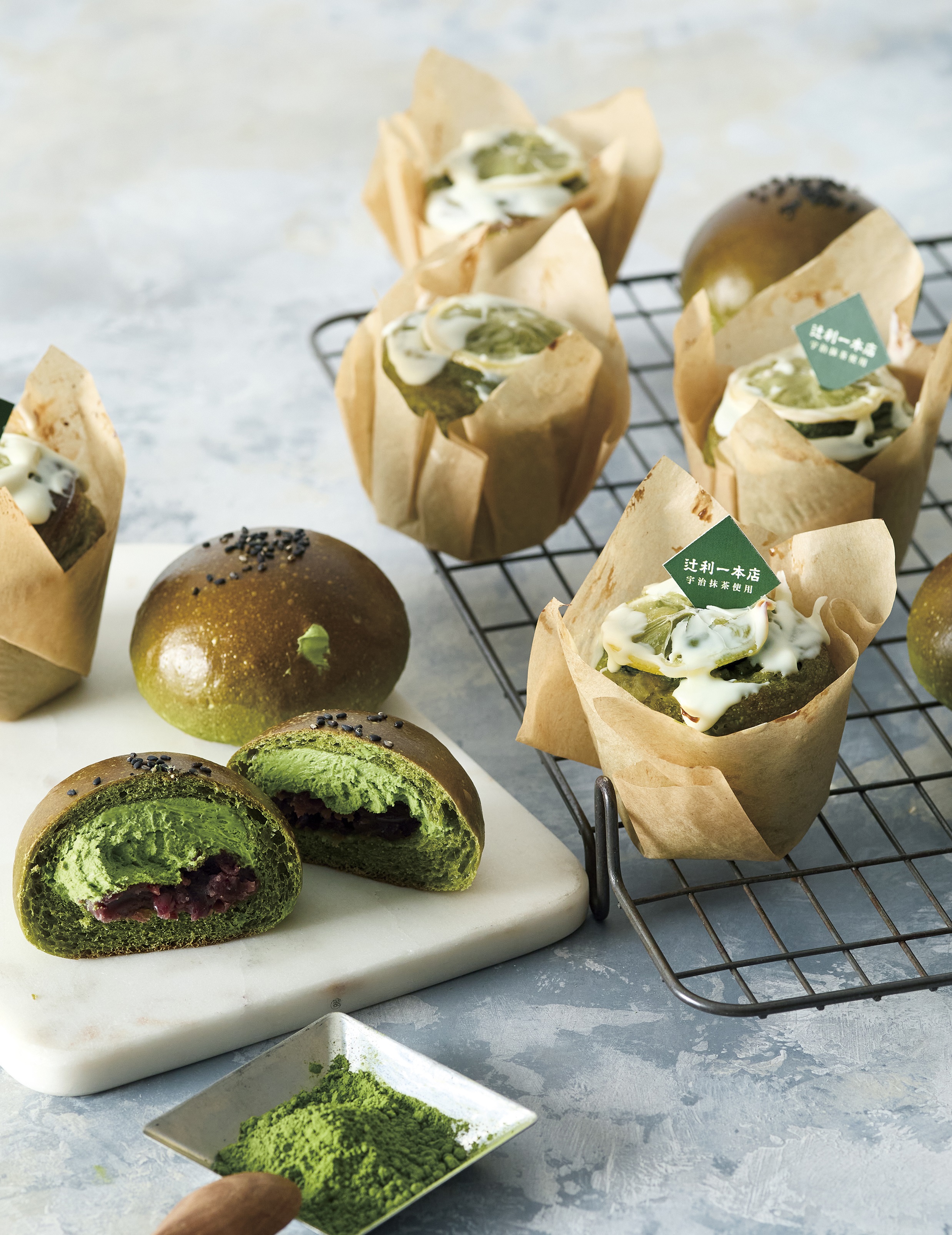 ベイカリー併設の16店舗限定で、宇治抹茶を使用した新作パン2種を発売