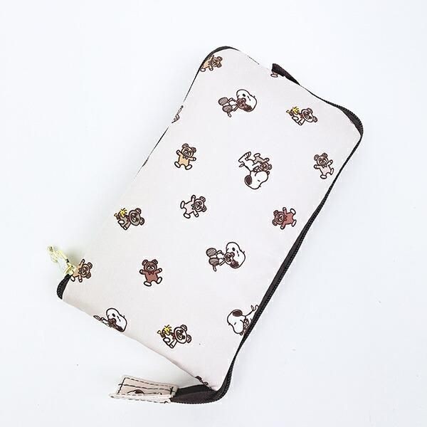 スヌーピーとくまの人形が素朴にならべられた総柄がさりがなくかわいいです。引手の部分にもさりげなくスヌーピーがいるのも胸キュンポイントです。
