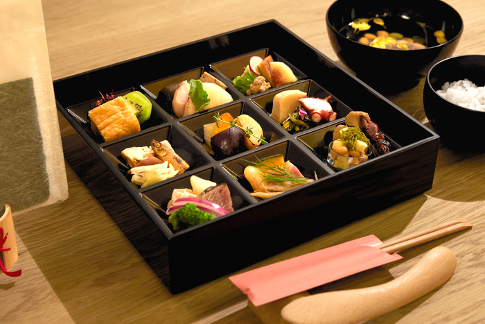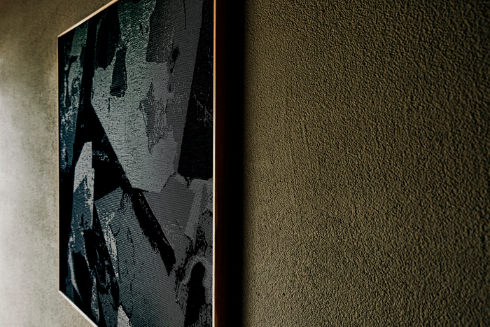 また本施設内には、京都にゆかりのあるさまざまな企業の製品や作家の作品を備品として設置しています。一例として、元禄元年(1688年)に京都西陣で創業し、文化の継承に取り組む「細尾」には、本施設のオープンにあわせて、日本の美意識が表現されている谷崎潤一郎の著書「陰翳礼讃」にインスピレーションを得て作られた西陣織で、アートパネルを製作していただきました。